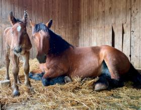 Jahrelang haben wir erfolgreich Quarter- und Painthorses gezüchtet. Unser gekörter Deckhengst "CatsCarminFox" hat uns mit 27 Jahren im Sommer 2023 verlassen. Auch unsere Zuchtstuten hatten hier auf der Ranch noch ein tolles Leben bis zum letzten Tag. Nesthäkchen "Cats Charmin Mary Lou" ist noch bei uns, wurde aber 2024 auch schon 11 Jahre alt. Und so ganz ohne Pferde für uns beide geht es halt dann doch nicht. Also haben wir uns ein nettes "kleines" Kaltblut gekauft und weil es so schön war, gleich noch eins. Shiva und Paulien bereichern nicht nur unsere Ranch, sondern sind auch DIE Pferde-Stars auf der Florian Geyer Bühne in Giebelstadt.